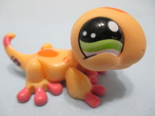 LIKE NEW Littlest Pet Shop 651 Green and Yellow Iguana with Blue Eyes Authentic Nov30npoHG